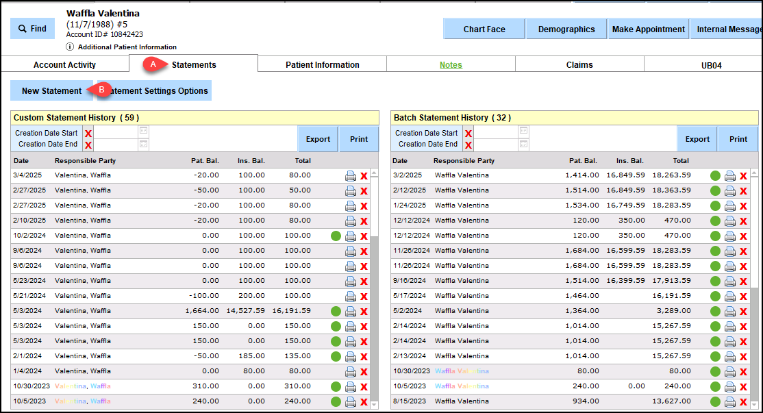 3. Go to the Statements tab (a) and click on 'New Statement' (b).