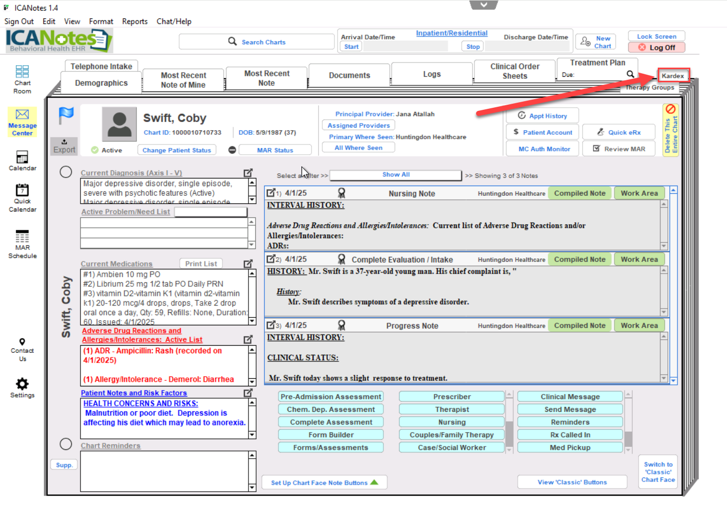 1. From the Chart Face, click the Kardex button in the top left.