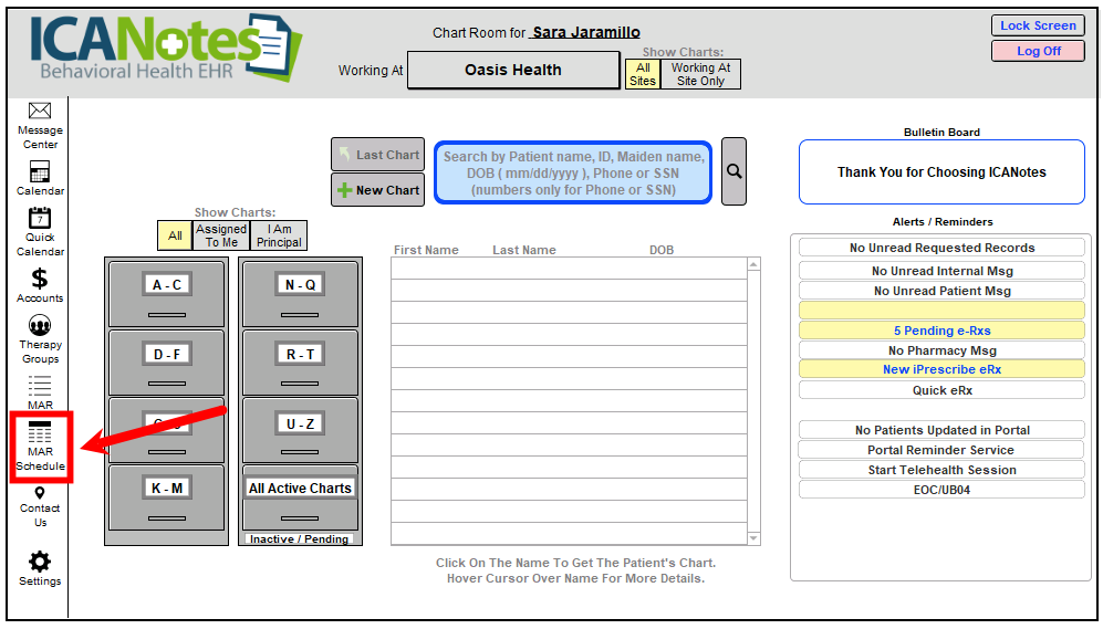The MAR schedule is available through the Chart Room: